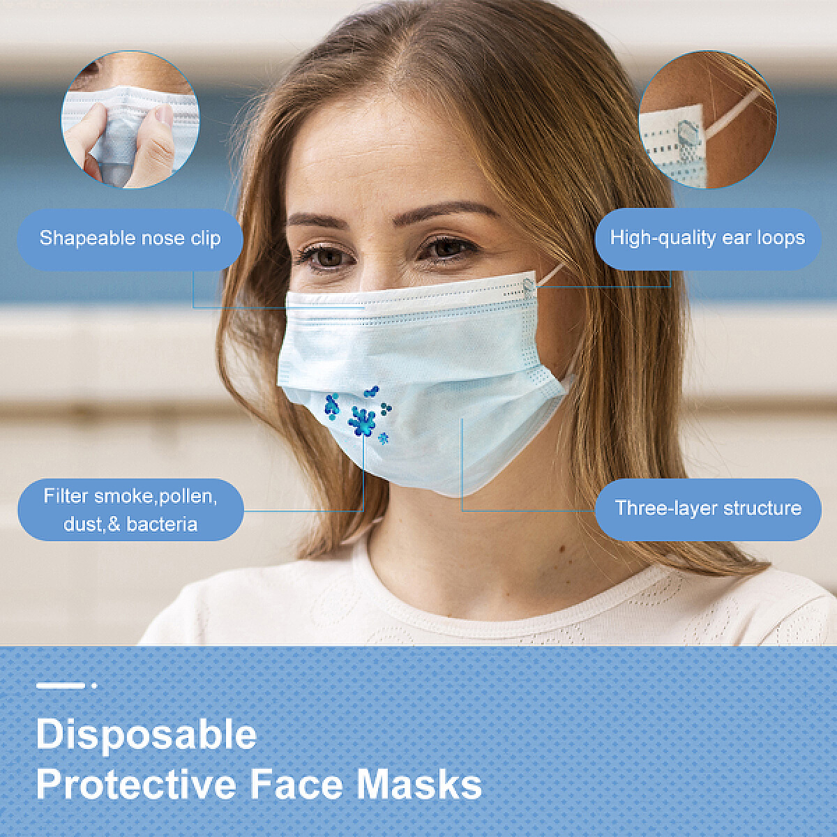 1、正確佩戴:確保金屬條緊貼鼻梁,兩邊無(wú)縫隙。